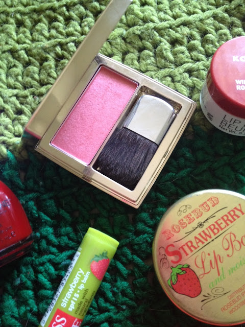 I just noticed the other day that some of my new favorite things are all sort of strawberry colored or flavored or whatever. And I thought it would make for a cute post.